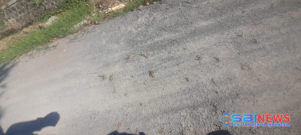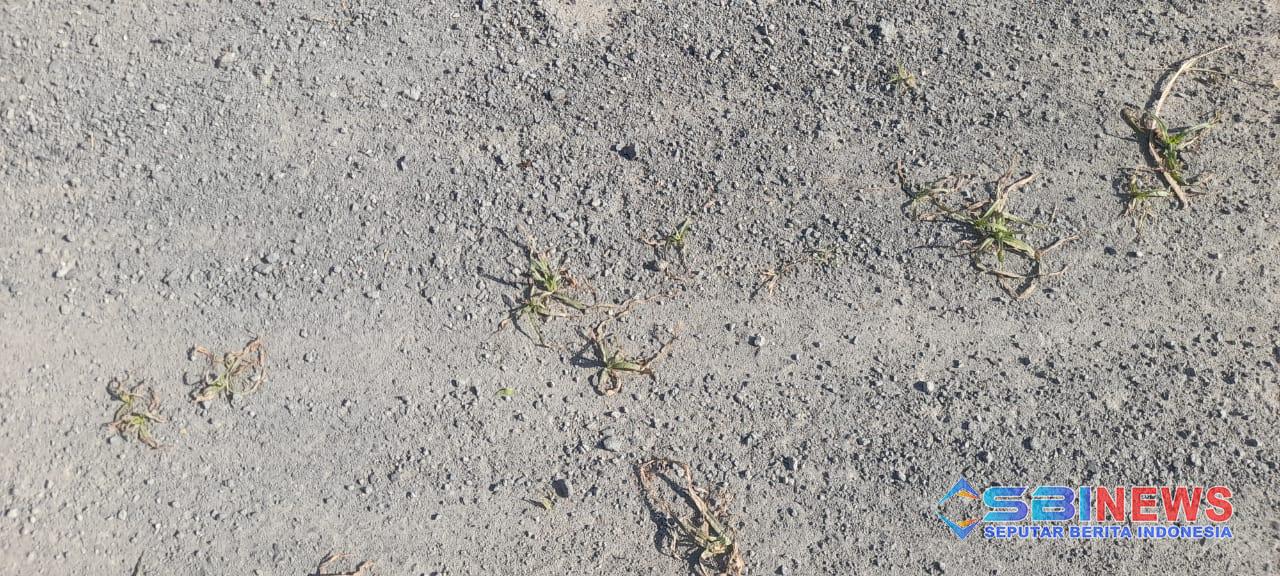 Namun, kondisi jalan yang belum lama selesai dikerjakan itu kini tampak memprihatinkan. Rumput mulai tumbuh dari celah-celah di permukaan aspal, terutama di sisi kanan-kiri jalan. Warga yang melintas maupun yang tinggal di sekitar lokasi mempertanyakan kualitas pelaksanaan proyek tersebut.