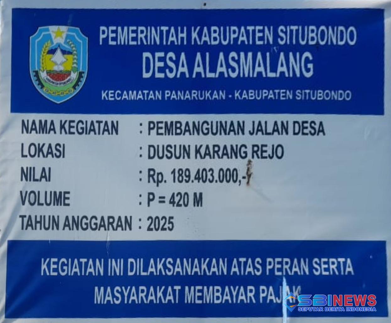 SITUBONDO – Proyek pembangunan jalan desa di Dusun Karang Rejo, Desa Alasmalang, Kecamatan Panarukan, Kabupaten Situbondo, menjadi sorotan warga. Belum genap sebulan sejak rampung dikerjakan, permukaan jalan aspal yang dibangun dengan anggaran mencapai Rp189.403.000 tersebut telah ditumbuhi rumput di sejumlah titik. Warga menyayangkan kondisi tersebut dan menilai pengerjaan proyek terkesan asal-asalan.