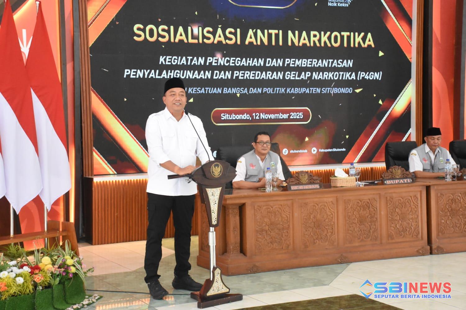 SITUBONDO (SBINews.id) — Upaya pencegahan penyalahgunaan narkotika terus digencarkan Pemerintah Kabupaten Situbondo. Melalui Badan Kesatuan Bangsa dan Politik (Bakesbangpol), kegiatan Sosialisasi Anti Narkotika dalam rangka Pencegahan dan Pemberantasan Penyalahgunaan dan Peredaran Gelap Narkotika (P4GN) digelar di Situbondo, Rabu (12/11/2025).