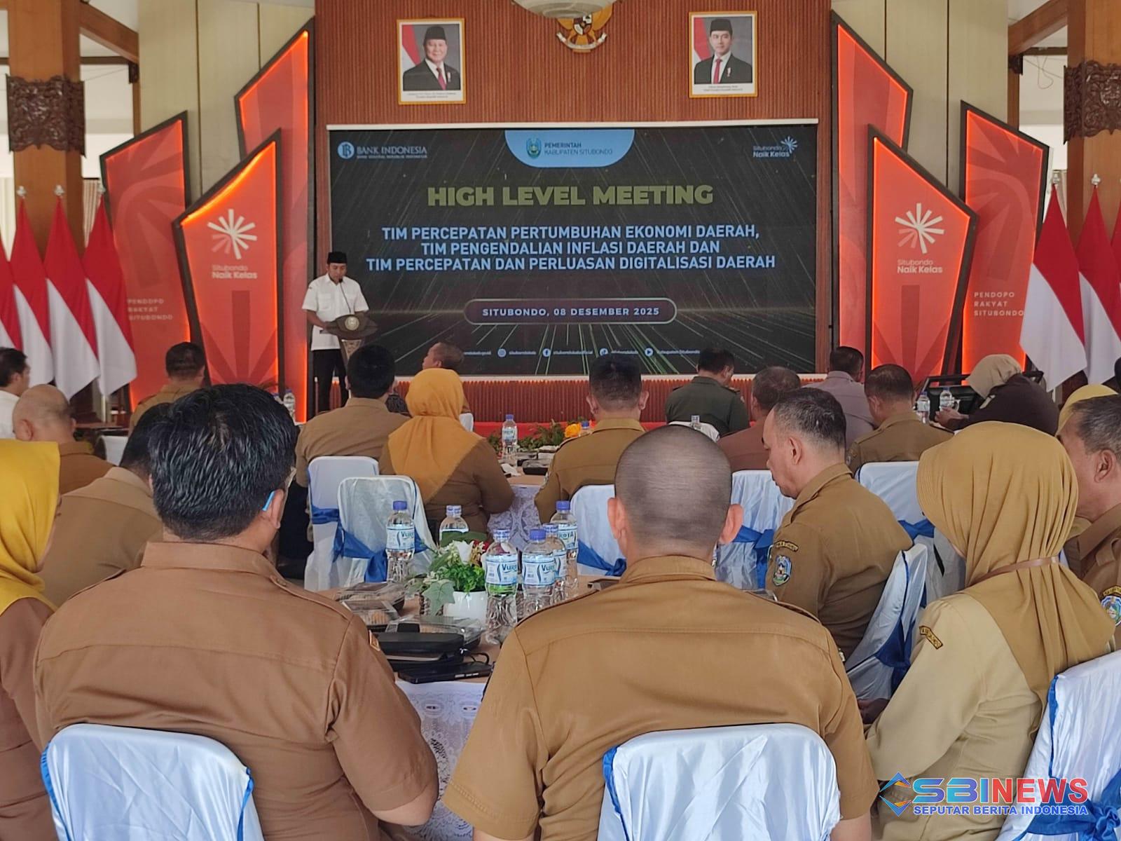 SITUBONDO (SBINews.id) – Pemerintah Kabupaten Situbondo menggelar High Level Meeting Tim Percepatan Pertumbuhan Ekonomi Daerah (TP2ED), Tim Pengendalian Inflasi Daerah (TPID), serta Tim Percepatan dan Perluasan Digitalisasi Daerah (TP2DD) pada Senin, 8 Desember 2025, bertempat di Pendopo Rakyat Situbondo. Forum strategis ini menjadi ruang konsolidasi lintas sektor dalam merumuskan arah kebijakan ekonomi daerah yang inklusif, kompetitif, dan berkelanjutan.