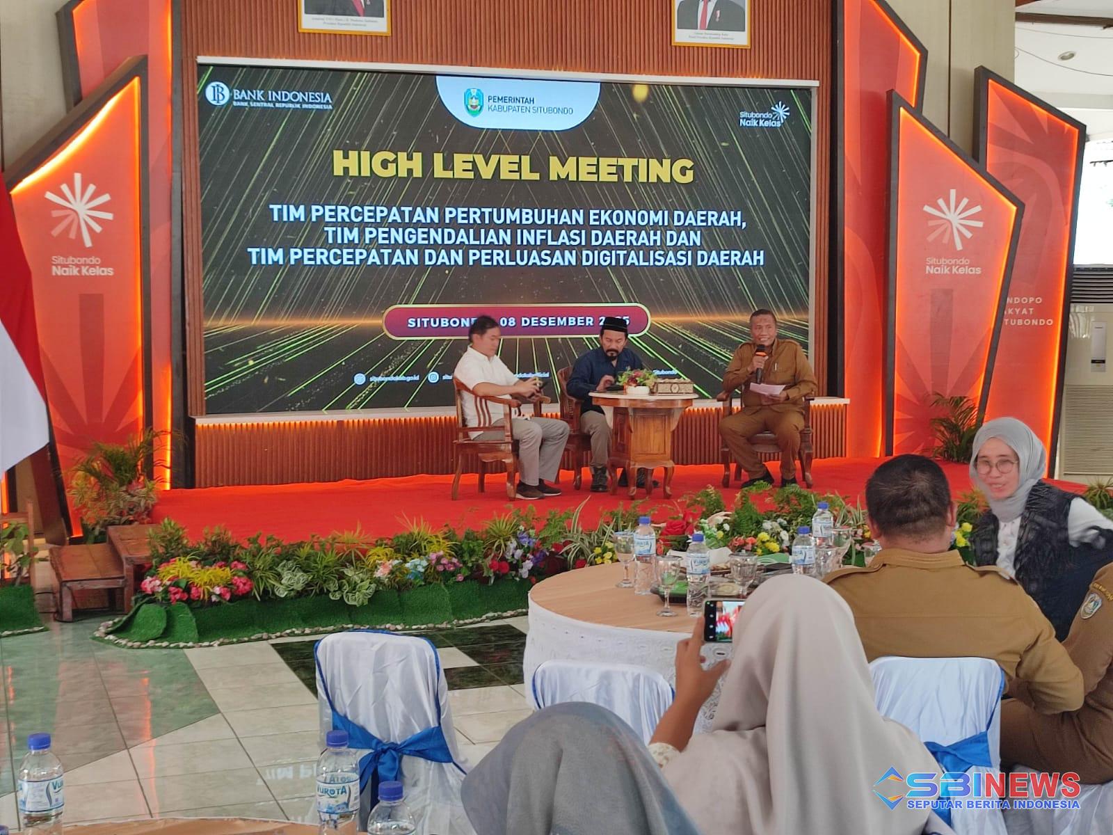 Rangkaian High Level Meeting ini kemudian dilanjutkan dengan diskusi dan talkshow yang dimoderatori oleh drs. H. Sugiyono, M.Pd.I., sebagai forum pendalaman dan penyelarasan gagasan antara pemerintah daerah, Bank Indonesia, akademisi, dan seluruh pemangku kepentingan dalam mendorong pertumbuhan ekonomi Situbondo yang berkelanjutan.