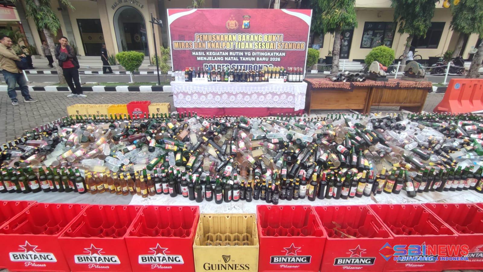 Jelang Natal 2025 dan Tahun Baru 2026, Polres Situbondo Musnahkan Miras, Knalpot Brong, dan Ban Tidak Standar