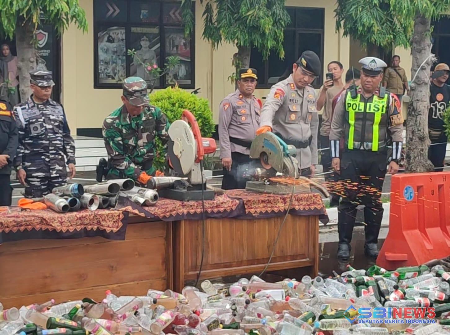 Dok.Foto: Pemusnahan knalpot brong secara simbolis oleh Kapolres Situbondo bersama Kepala Staf Kodim (Kasdim) 0823/Situbondo Mayor Kav Aan Jauhari
