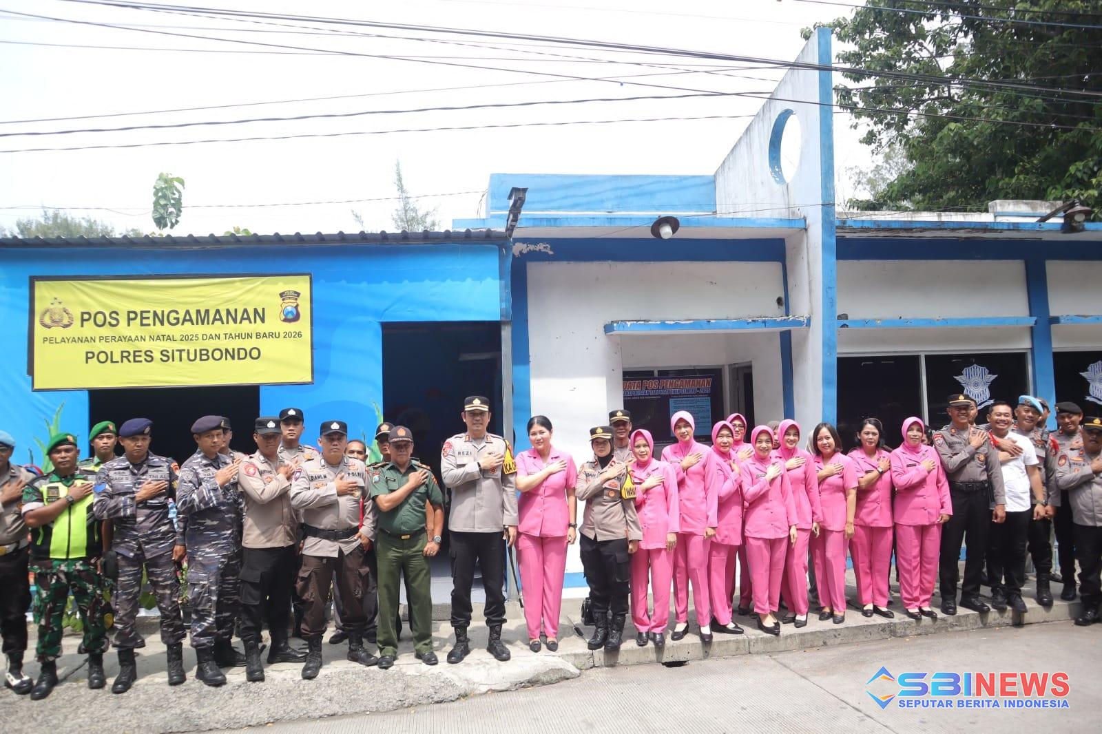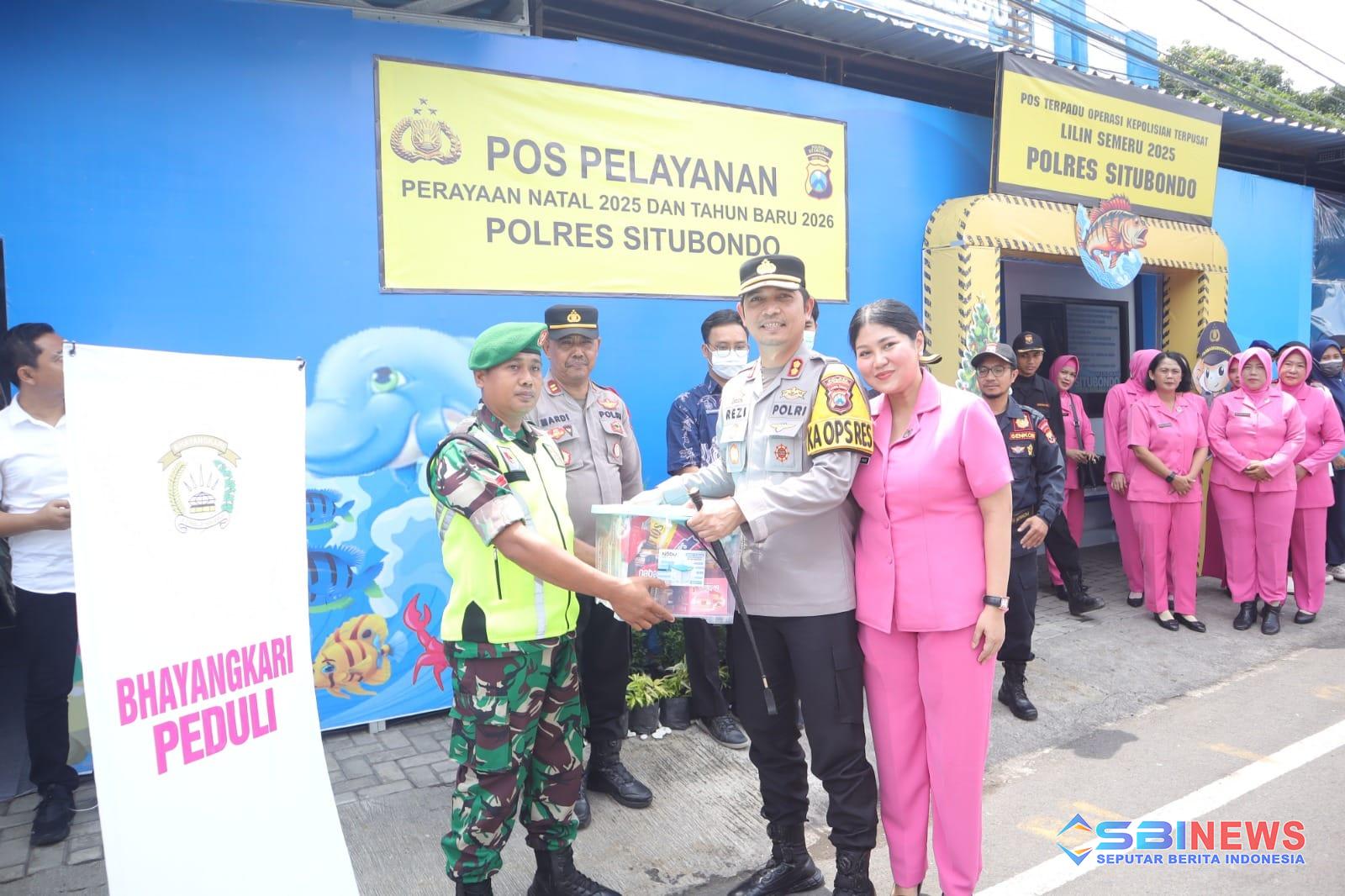 SITUBONDO (SBINews.id) – Kapolres Situbondo AKBP Rezi Dharmawan, S.I.K., M.I.K., bersama Ketua Bhayangkari Cabang Situbondo Ny. Cania Rezi melakukan kunjungan ke sejumlah Pos Pengamanan (Pospam) dan Pos Pelayanan (Posyan) dalam rangka Operasi Lilin Semeru 2025, Jumat (26/12/2025).