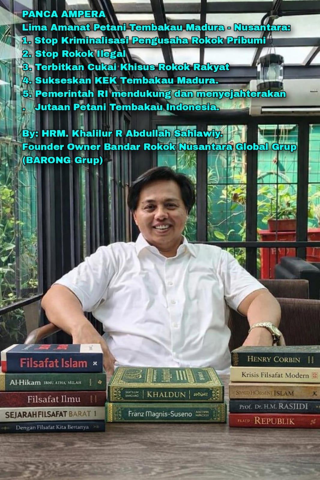 PAMEKASAN (SBINews.id) – Di tengah gencarnya operasi pemberantasan rokok ilegal dan polemik penyimpangan pita cukai, sebuah seruan tegas muncul dari jantung Pulau Madura. HRM Khalilur R Abdullah Sahlawiy, yang akrab disapa Gus Lilur, selaku pemilik Bandar Rokok Nusantara Global Grup (BARONG Grup), meluncurkan deklarasi PANCA AMPERA (Lima Amanat Petani Tembakau Madura – Nusantara).