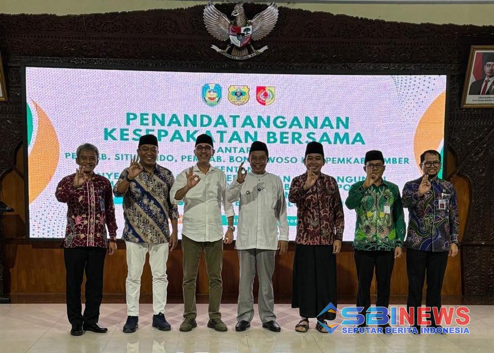 BONDOWOSO (SBINews.id) — Tiga kepala daerah dari Kabupaten Situbondo, Bondowoso, dan Jember resmi menandatangani kesepakatan pembentukan kawasan aglomerasi Tapal Kuda di Pendopo Raden Bagus Asra, Bondowoso, Kamis (16/10/25). Kesepakatan strategis ini menandai langkah besar menuju integrasi pembangunan ekonomi, transportasi, dan pariwisata di wilayah timur Jawa Timur.