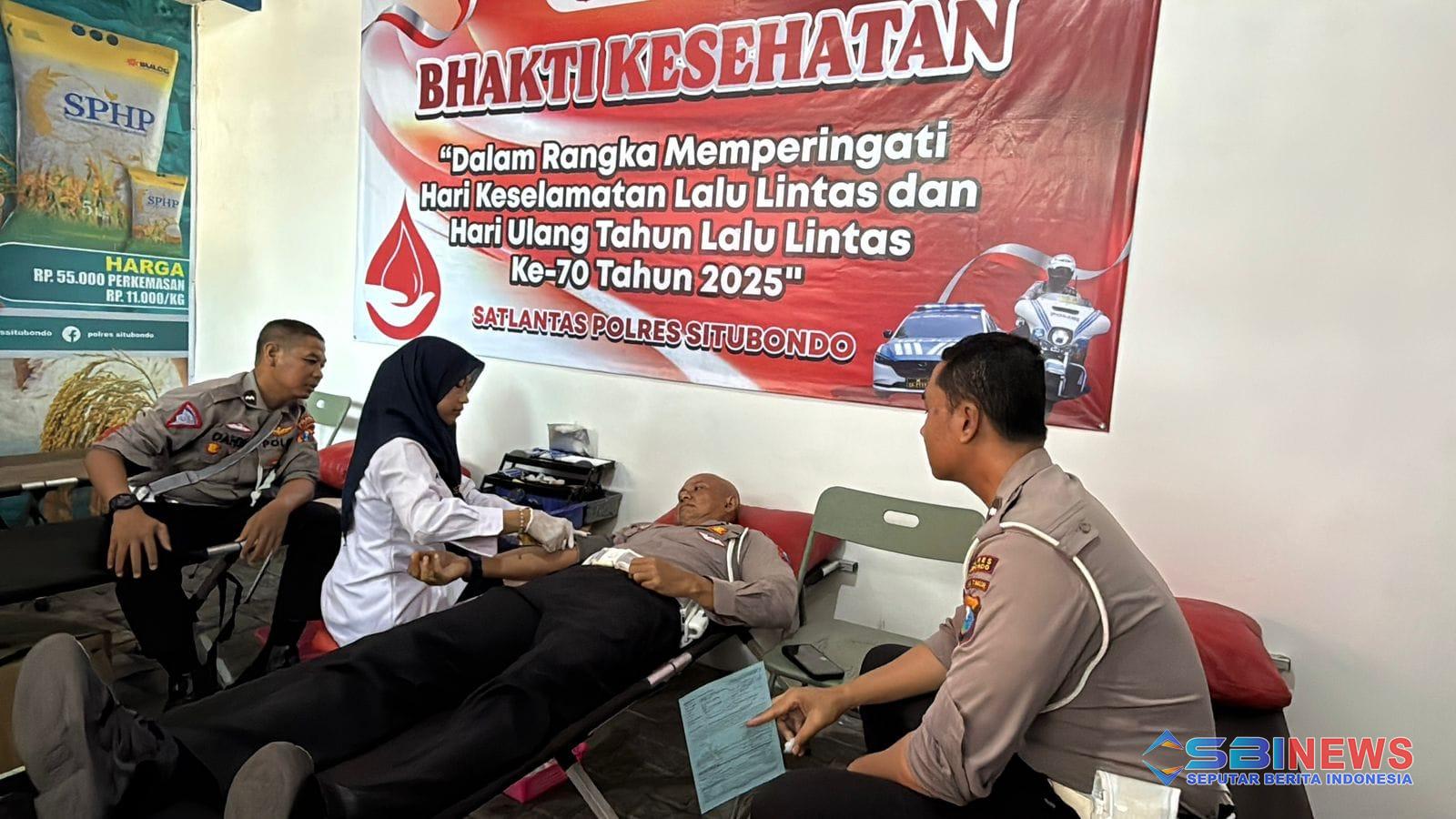SITUBONDO – Dalam rangka memperingati Hari Ulang Tahun ke-70 Lalu Lintas Bhayangkara, Satuan Lalu Lintas (Satlantas) Polres Situbondo bekerja sama dengan Palang Merah Indonesia (PMI) Kabupaten Situbondo mengadakan kegiatan sosial kemanusiaan berupa donor darah. Acara ini diselenggarakan pada Rabu, 3 September 2025, di Pos KTL Timur Alun-Alun Situbondo.