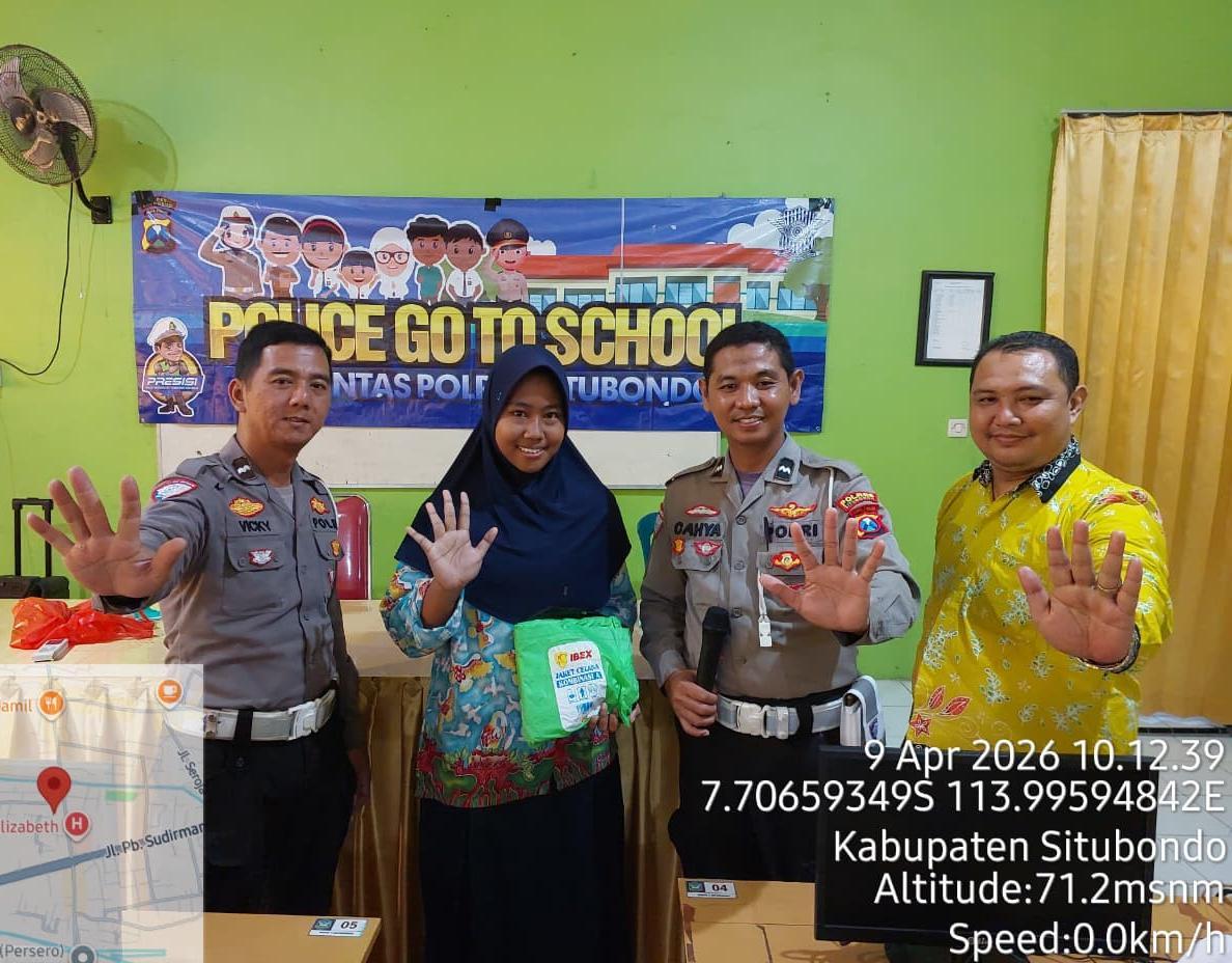 SITUBONDO (SBINews.id) – Keselamatan generasi muda di jalan raya kini menjadi prioritas utama jajaran kepolisian. Menyikapi tingginya risiko kecelakaan yang melibatkan anak sekolah, Satlantas Polres Situbondo menggelar aksi edukatif bertajuk “Police Go To School” di SMPN 4 Situbondo pada Kamis (9/4/26) pagi.