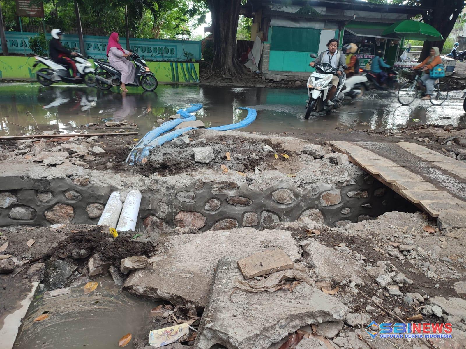 ​Pengalihan air ini menciptakan kolam dadakan yang memanjang di salah satu sisi Jalan Sucipto. Padahal, jalur ini dikenal sebagai urat nadi lalu lintas yang sangat padat, menghubungkan beberapa pusat aktivitas masyarakat dan perkantoran di Situbondo.