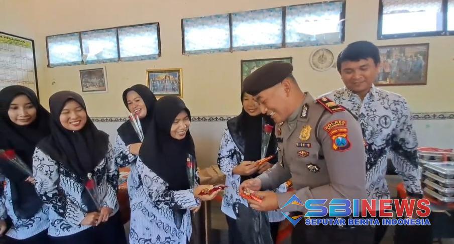 Suasana hangat dan penuh keakraban terlihat sejak awal kegiatan. Para guru dan siswa turut larut dalam rangkaian acara yang diwarnai pembagian cokelat, bunga, paket sembako, hingga tumpeng. Aksi sosial ini dihadirkan sebagai bentuk apresiasi Polres Situbondo terhadap peran penting pendidik, sekaligus menjalin komunikasi positif dengan masyarakat sejak dini.