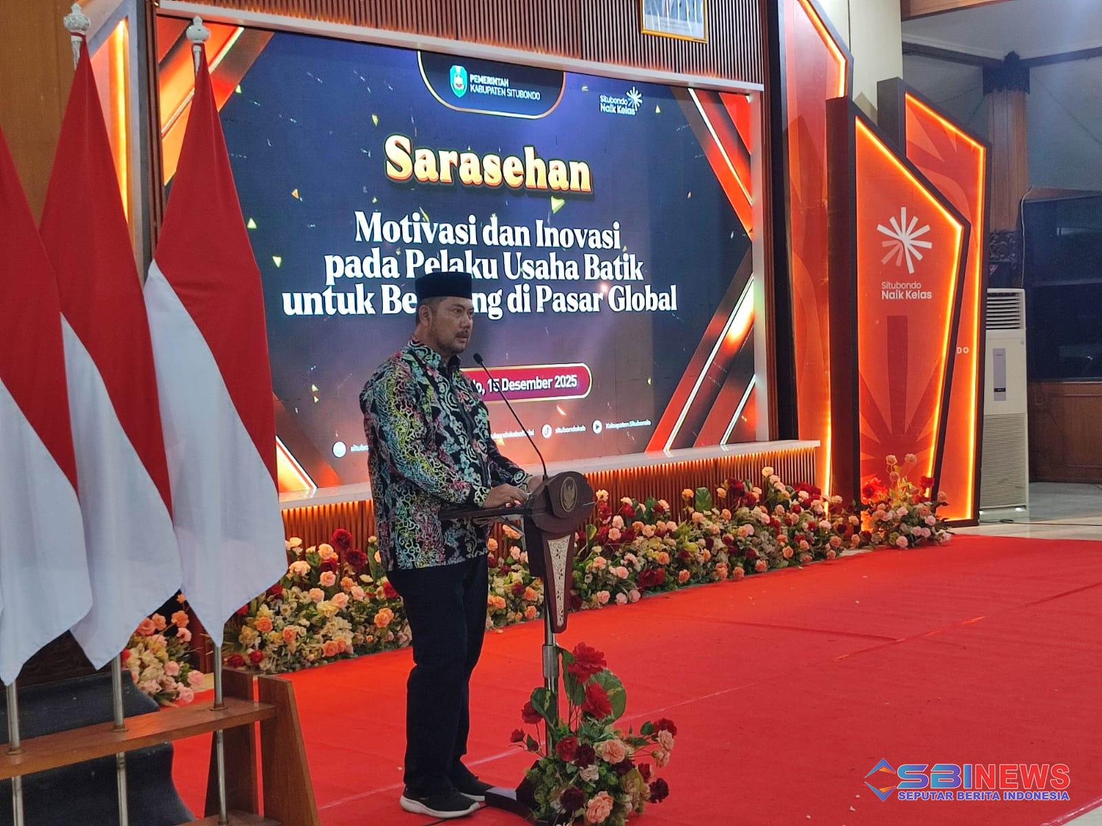 SITUBONDO (SBINews.id) — Pemerintah Kabupaten Situbondo terus memperkuat komitmennya dalam mendorong kemajuan industri kreatif lokal, khususnya batik. Hal itu diwujudkan melalui kegiatan Sarasehan Motivasi dan Inovasi pada Pelaku Usaha Batik untuk Bersaing di Pasar Global yang digelar di Pendopo Rakyat Situbondo, Senin (15/12/2025).