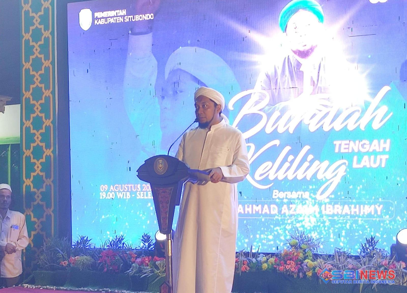 SITUBONDO – Dalam rangka menyambut Hari Jadi Kabupaten Situbondo (Harjakasi) ke-207 bertema Situbondo Naik Kelas, Pemerintah Kabupaten Situbondo menggelar acara Sholawat Burdah Keliling Laut yang dipimpin langsung oleh Pengasuh Pondok Pesantren Salafiah Syafi’iyah Sukorejo, KHR Ahmad Azaim Ibrahimy, Sabtu malam (9/8/25).