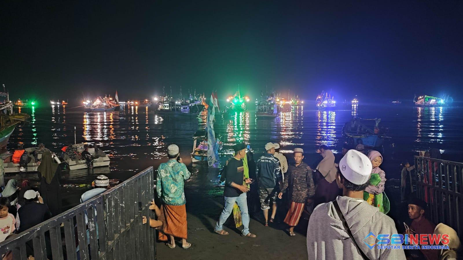Ratusan perahu bergerak serentak, membentuk iring-iringan cahaya di tengah gelapnya laut. Lantunan kasidah berpadu dengan gemerlap lampu, menghadirkan suasana religius sekaligus memukau.