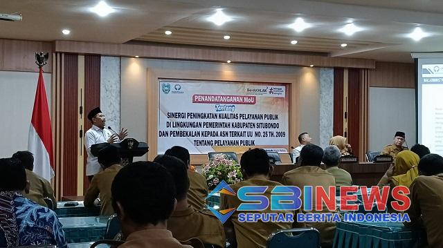 “Kita mengundang Ombudsman RI. Mungkin baru sekarang Situbondo ini didatangi dan berani bekerjasama bikin MoU dengan Ombudsman untuk pelayanan publik,” ungkap Mas Rio di hadapan para peserta kegiatan.